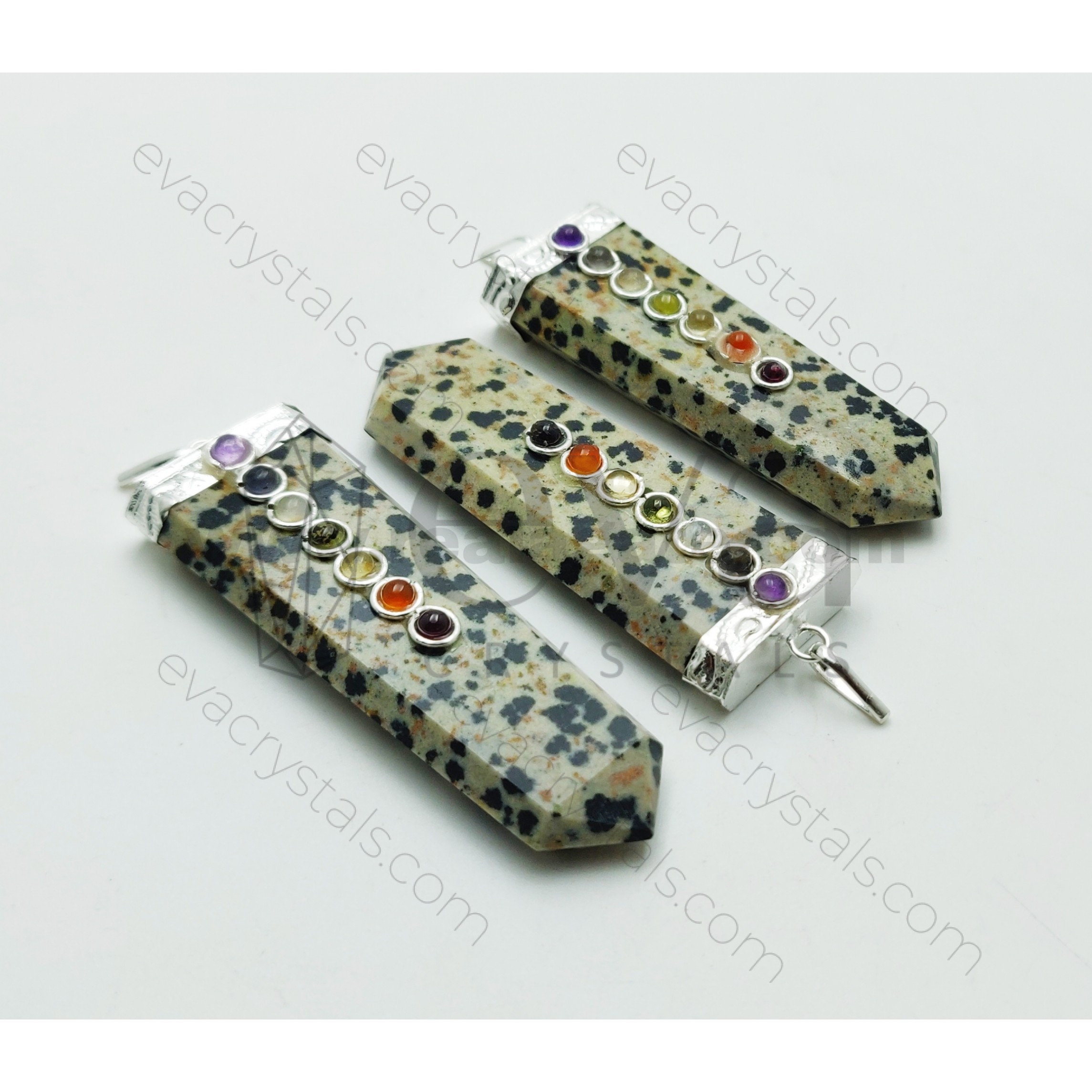 The Dalmatian Chakra Flat Pendant is a stylish and spiritually charged accessory. Adorned with Dalmatian Stone representing different chakras, this flat pendant ensures energy alignment and balance. Wear it for both fashion and holistic well-being, allowing the stabilizing energy of Dalmatian Stone to ground you and the chakra representation to harmonize your energy centers.
